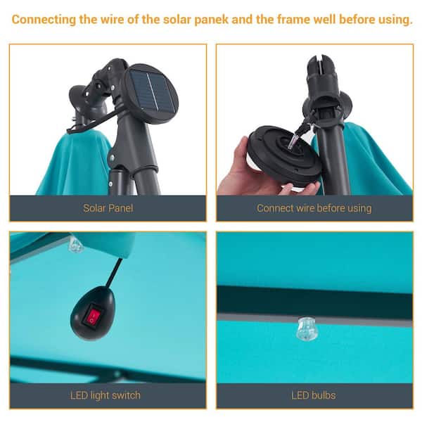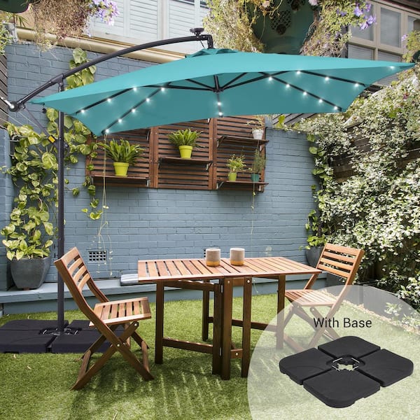8.2 ft. Square Solar LED Cantilever Patio Umbrellas With Base in Lake Blue