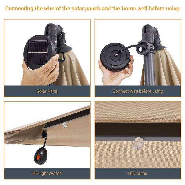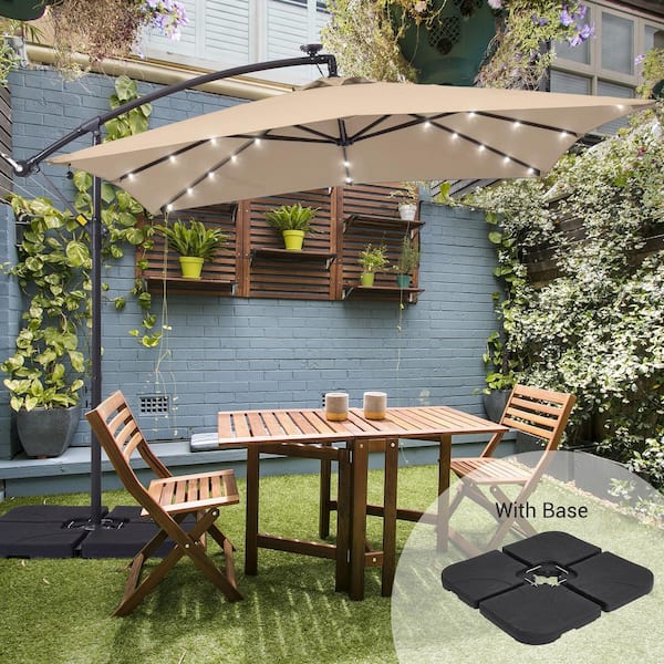 8.2 ft. Square Solar LED Cantilever Patio Umbrellas With Base in Sand