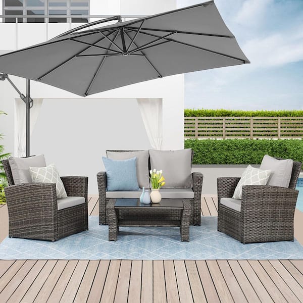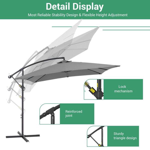 8.2 ft. Steel Pole and Ribs Square Outdoor Cantilever Offset Hanging Patio Umbrellas in Gray