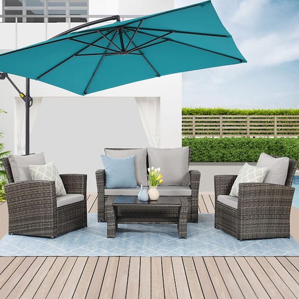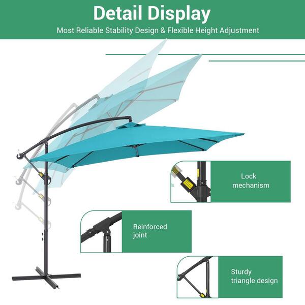 8.2 ft. Steel Pole and Ribs Square Outdoor Cantilever Offset Hanging Patio Umbrellas in Lake Blue