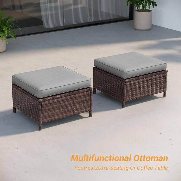 8-Piece Patio Outdoor Brown Wicker Conversation Seating Set Thickening Gray Cushions With Swiveling Rocker