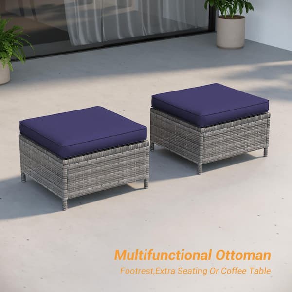 8-Piece Patio Outdoor Grey Wicker Conversation Seating Set Thickening Navy Blue Cushions With Swiveling Rocker