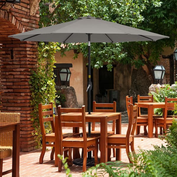 9 ft. Patio Market Umbrellas with Crank and Tilt Button in Gray
