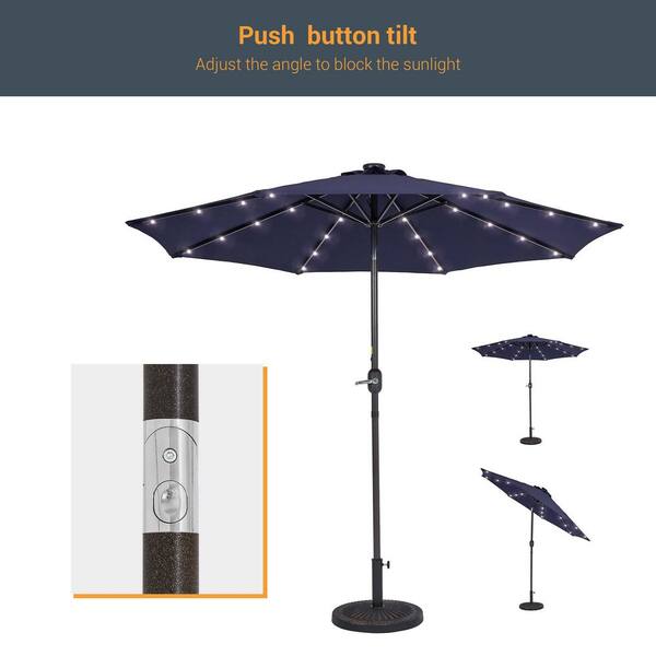9 ft. Solar LED Market Patio Umbrellas with Solar Lights Tilt Button in Azure Blue