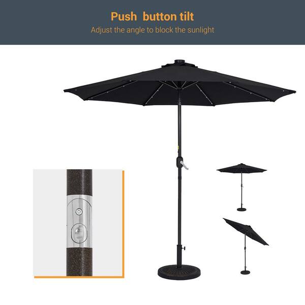 9 ft. Solar LED Market Patio Umbrellas with Solar Lights Tilt Button in Dull Black