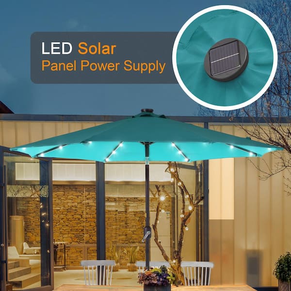 9 ft. Solar LED Market Patio Umbrellas with Solar Lights and Tilt Button in Turquoise