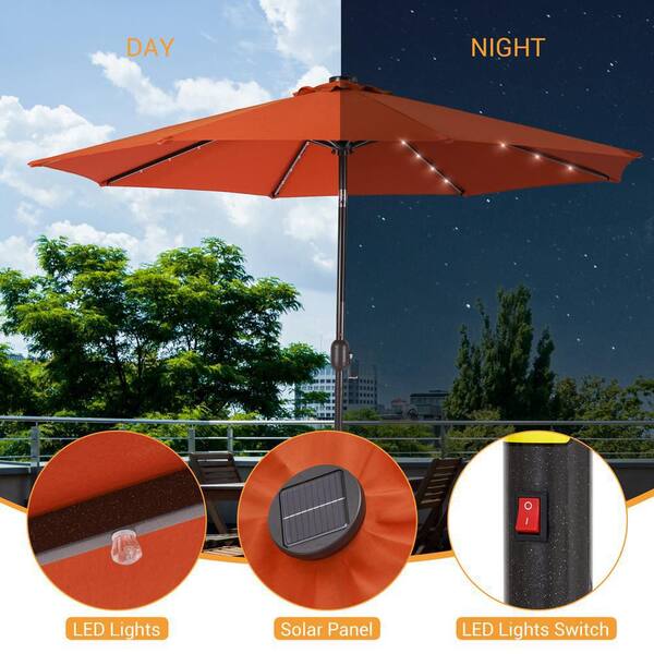 9 ft. Steel Solar-powered Round Outdoor Market Patio Umbrella with Crank in Orange