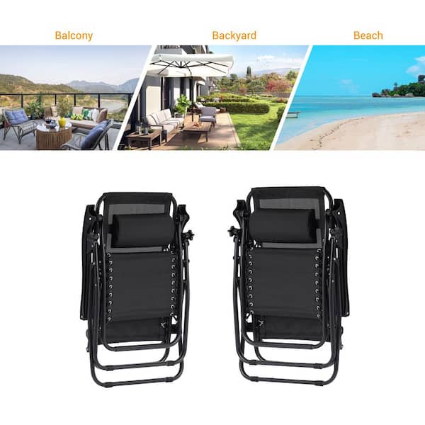 Black Zero Gravity Folding Chair Patio Recliner with Adjustable Headrest And Side Tray(Set of 2 Chairs)