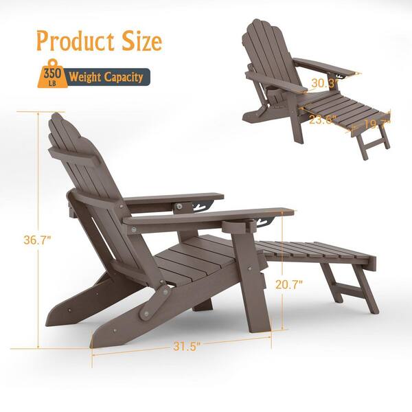 Coffee Folding Adirondack Chair with Retractable Ottoman, HIPS Adirondack Chair with Cup Holder (Set of 1)