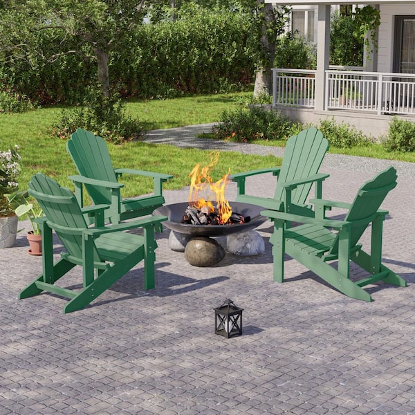 Dark Green HIPS Plastic Weather Resistant Adirondack Chair for Outdoors (4-Pack)