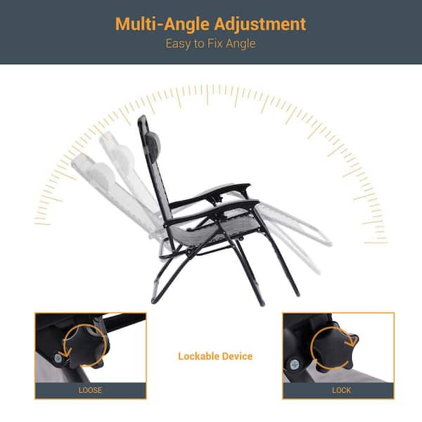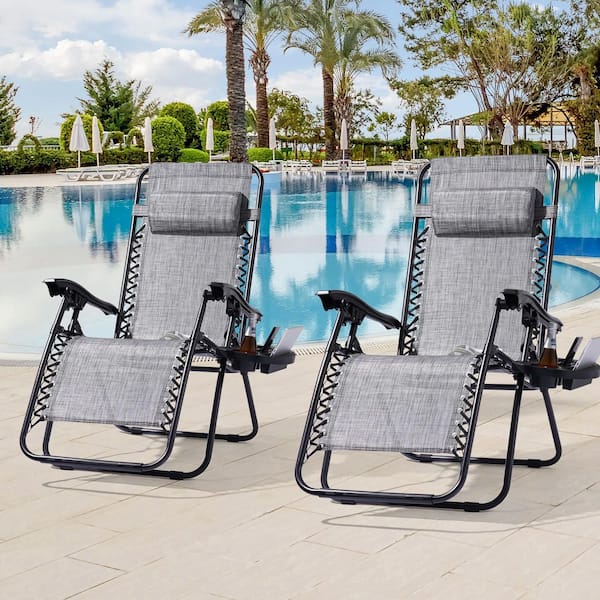 Gray Zero Gravity Folding Chair Patio Recliner with Adjustable Headrest And Side Tray(Set of 2 Chairs)