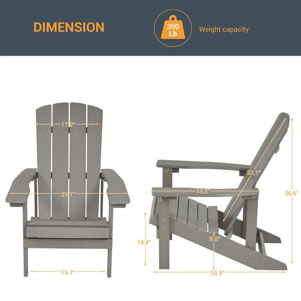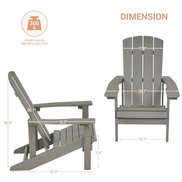 Light Gray Weather Resistant HIPS Plastic Adirondack Chair for Outdoors (4-Pack)