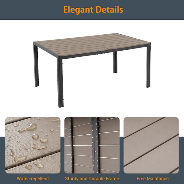 Outdoor Rectangle Patio Dining Table: Resin HIPS Top for Easy Maintenance