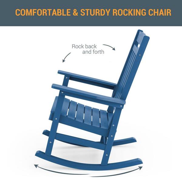 Patio Adirondack Chair Plastic 350 lbs. for Deck and Balcony Multi-Use Like Real Wood Outdoor Rocking Chair in Navy Blue