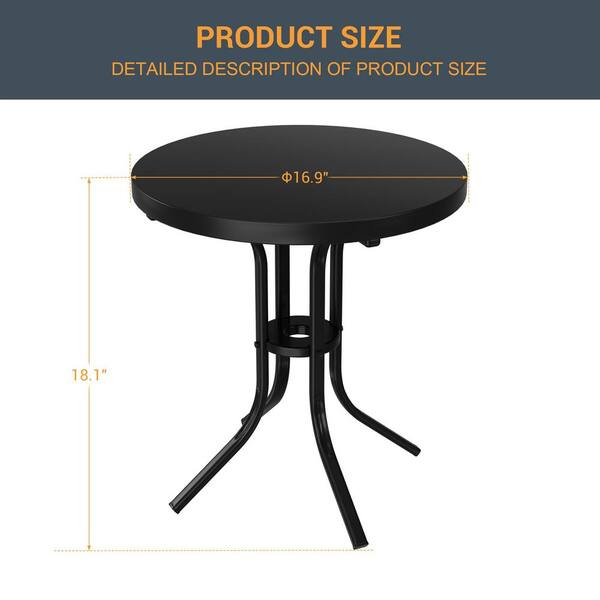 Patio Black Round Metal Frame Outdoor Side Table for Room, Bedside, Porch, Balcony and Deck