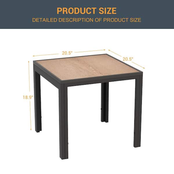 Patio Square Brown Metal and Imitation-wood Table Outdoor Side Table