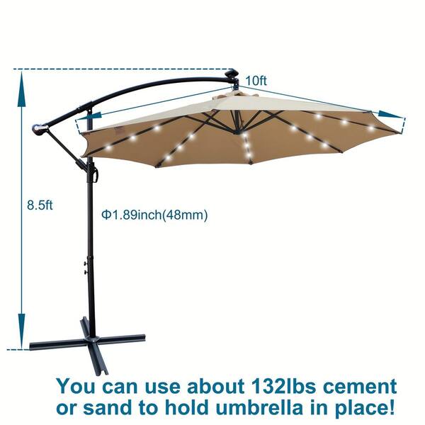10 ft. Outdoor Patio Umbrella Solar Powered LED Lights with Crank, Cross Base and Waterproof Sun Shade in Tan
