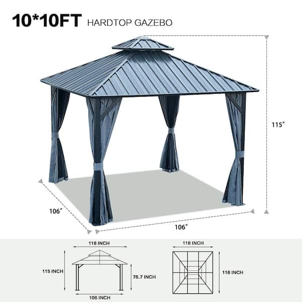 10 ft. x 10 ft. Hardtop Gazebo-Robust Double Roof with Curtains & Netting, Sturdy Aluminum Frame for Patio and Garden