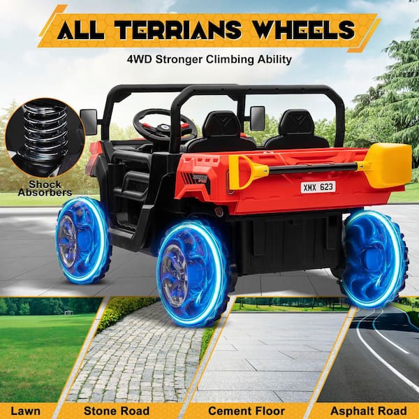 24-Volt 4 x 200-Watt Ride on Toys with Remote, Metal Frame UTV with 2 XL Seater, 4WD/2WD Switchable, Red