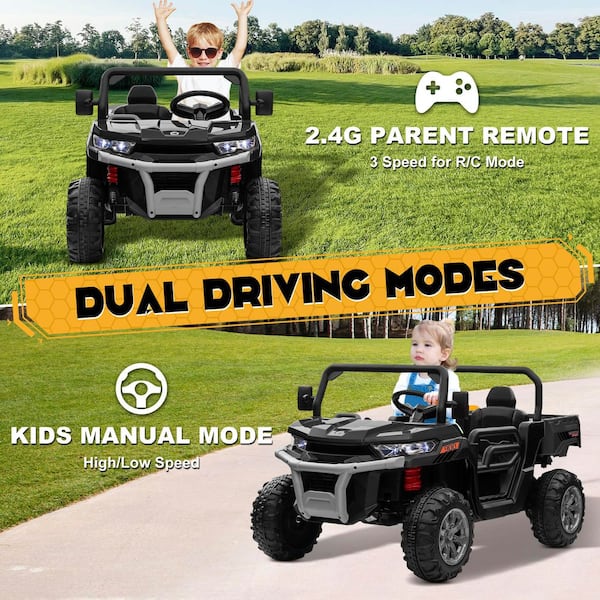 24 Volt 4x200W Ride on Toys with Remote, Metal Frame UTV with 2 XL Seater, 4WD/2WD Switchable,Black