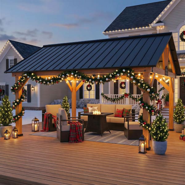 13 ft. x 11 ft. Cedar Wood Hardtop Outdoor Patio Gazebo with Galvanized Steel Roof and Ceiling Hook