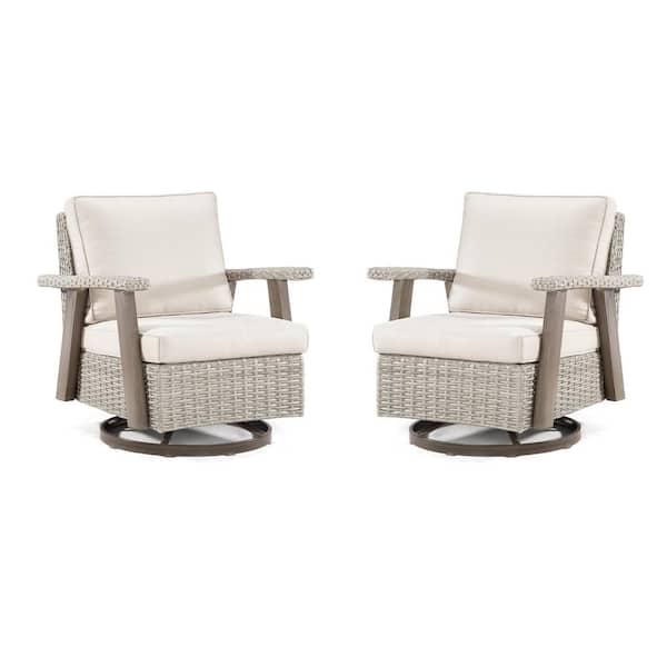 2-Pack Wicker Patio Outdoor Rocking Chair Swivel Lounge Chair with Beige Cushions