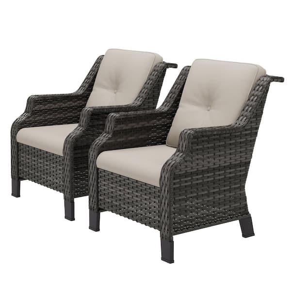 2-Piece Wicker Patio Outdoor Lounge Chair with Beige Cushions