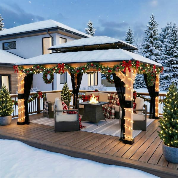 Cedar Wood 13 ft. x 11 ft. Outdoor Patio Hardtop Gazebo with Double Galvanized Steel Roof and Mosquito Netting