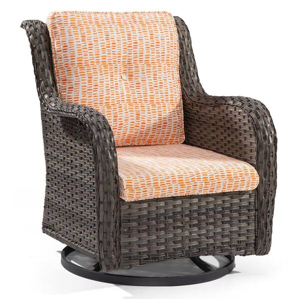 Wicker Outdoor Rocking Chair Patio Swivel with Pebble Orange Cushions