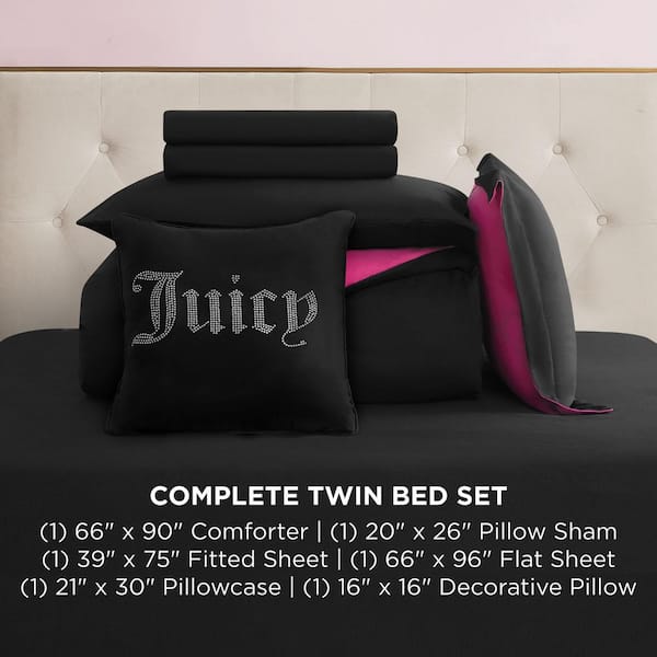 Alexis Solid 6-Piece Black/Hot Pink Solid Color Polyester Twin Bed in a Bag Comforter Set