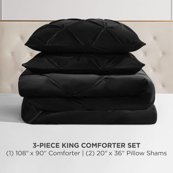 Kiss Pleat Micro Mink 3-Piece Black Polyester King Comforter Set