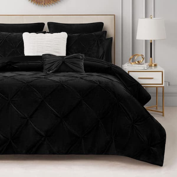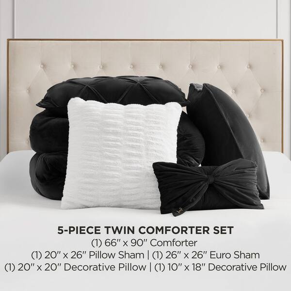 Kiss Pleat Micromink 5-Piece Black Solid Color Microfiber Polyester Twin/Twin XL Comforter Set