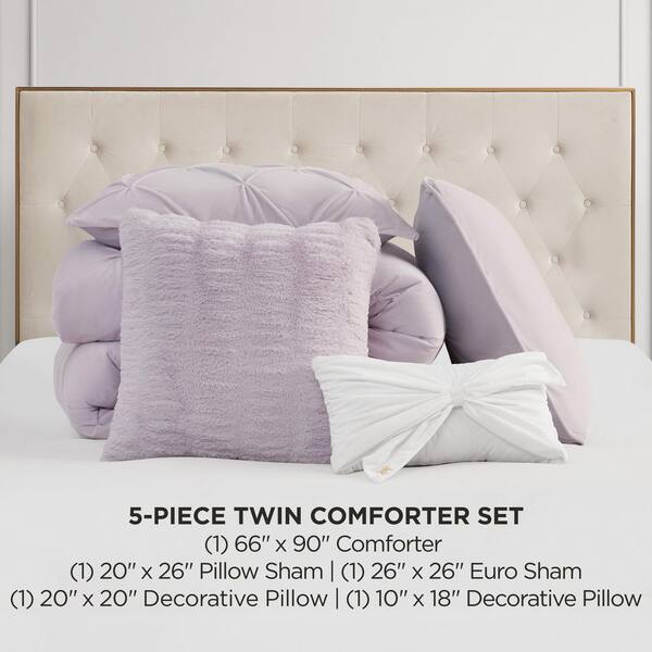 Kiss Pleat Micromink 5-Piece Lavender Purple Solid Color Microfiber Polyester Twin/Twin XL Comforter Set