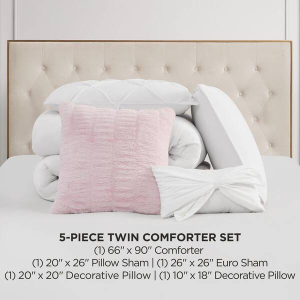 Kiss Pleat Micromink 5-Piece White Solid Color Microfiber Polyester Twin/Twin XL Comforter Set