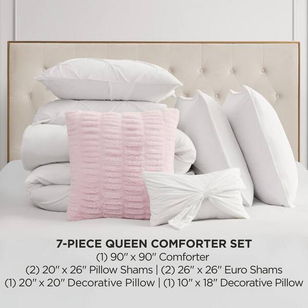 Kiss Pleat Micromink 7-Piece White Solid Color Microfiber Polyester Full/Queen Comforter Set