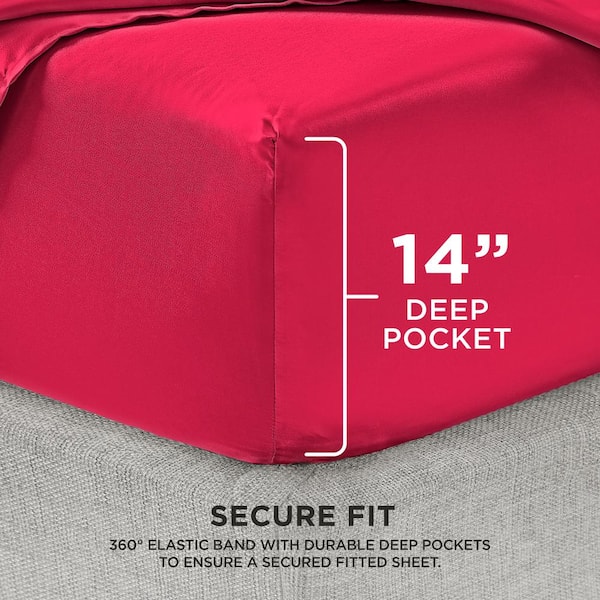Silky Satin 4-Piece Hot Pink Solid Color Microfiber King Deep Pocket Sheet Set
