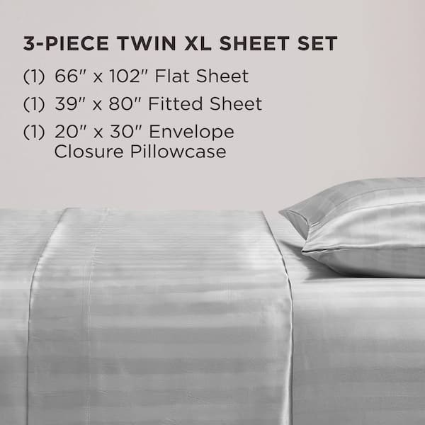 Silky Satin Damask 3-Piece Gray Striped Polyester Twin XL Soft Sheet Set