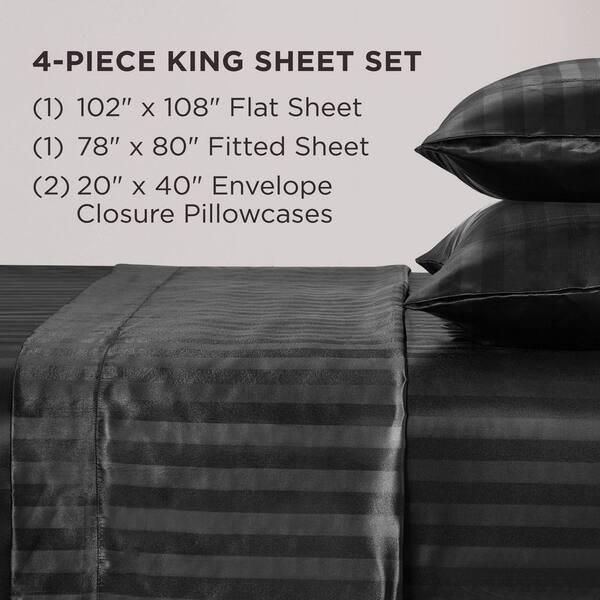 Silky Satin Damask 4-Piece Black Striped Polyester King Soft Sheet Set