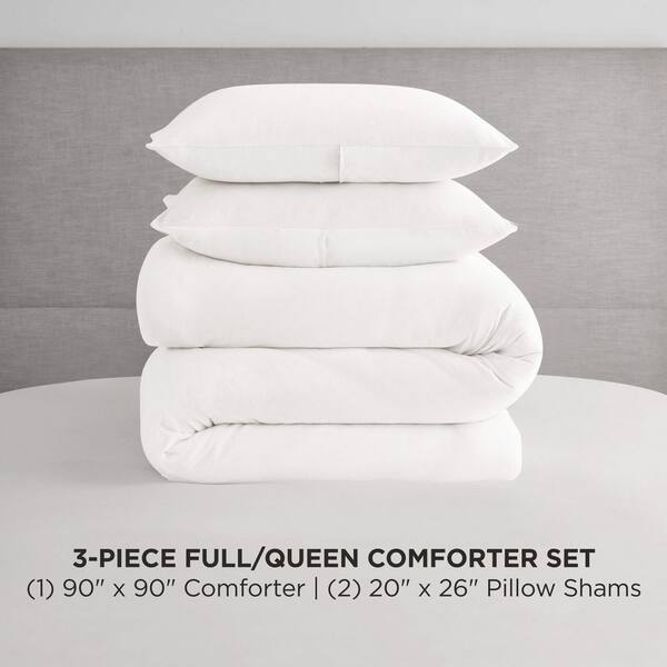 Solid Velour 3-Piece Angel White Solid Color Microfiber Full/Queen Comforter Set