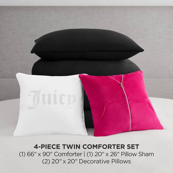 Solid Velour 4-Piece Black Solid Color Microfiber Twin/Twin XL Comforter Set