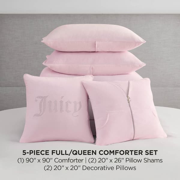 Solid Velour 5-Piece Marshmallow Pink Solid Color Microfiber Full/Queen Comforter Set