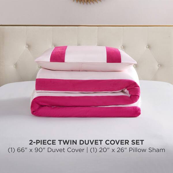 Velvet Stripe on Satin 2-Piece Marshmallow Pink Polyester Twin/Twin XL Duvet Cover Set