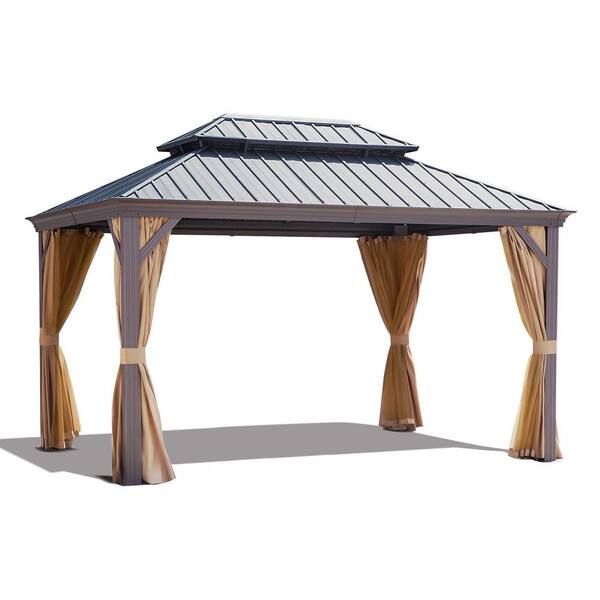 10 ft. x 14 ft. Aluminum Outdoor Double Galvanized Steel Roof Gazebo with Ceiling Hook, Mosquito Netting and Curtains
