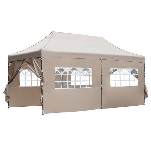 10 ft. x 20 ft. Khaki Pop Up Canopy Tent Heavy Duty UV and Waterproof Protection Party Tent with 6 Sidewalls Roller Bag