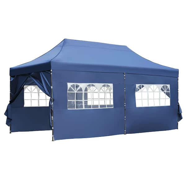 10 ft. x 20 ft. Navy Pop Up Canopy Tent Heavy Duty UV and Waterproof Protection Party Tent with 6 Sidewalls Roller Bag