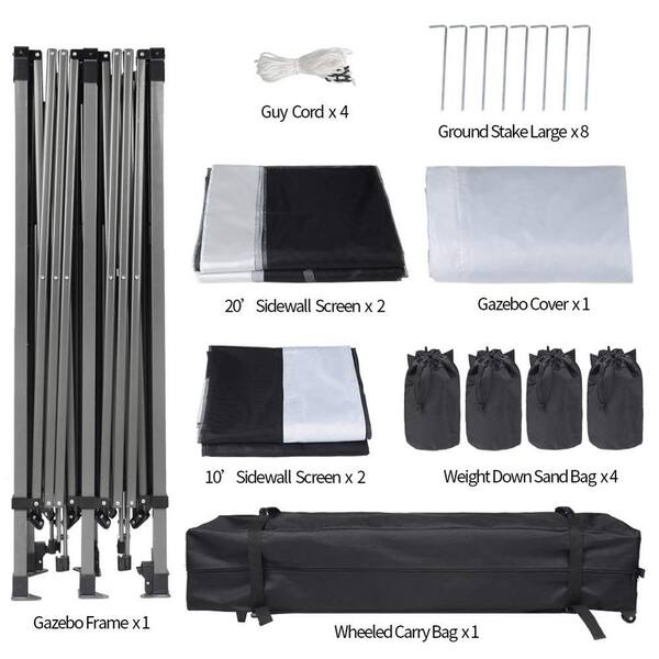 10 ft. x 20 ft. White Rectangular Pop-Up Canopy with Removable Sidewalls and Wheeled Carry Bag