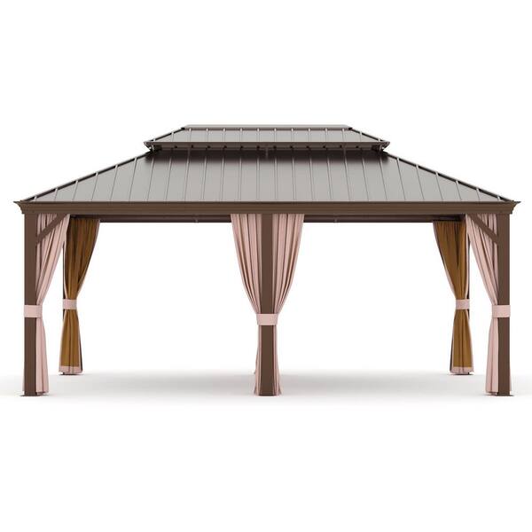 12 ft. x 18 ft. Aluminum Outdoor Gazebo Double Galvanized Steel Roof With Ceiling Hook, Mosquito Netting and Curtains