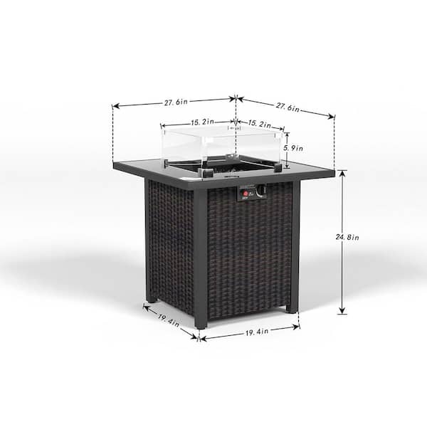 28 in. 50000 BTU Outdoor Propane Gas Square Fire Pit Table with Glass Wind Guard in Brown