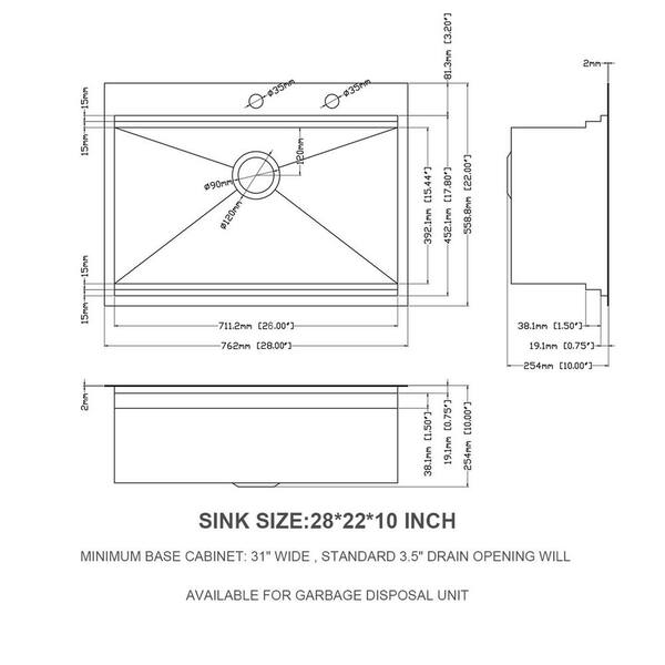 28 in. Drop-In Single Bowl 16-Gauge Silver Stainless Steel Kitchen Sink