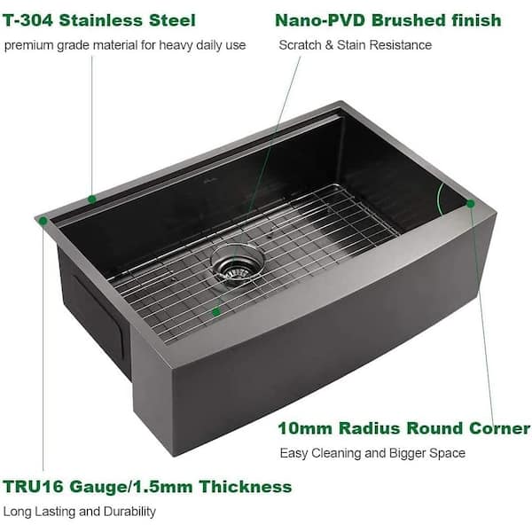 30 in. Farmhouse Apron Front Single Bowl 16 Gauge Gunmetal Black Stainless Steel Kitchen Sink Basin